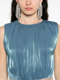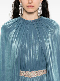 Jazmin embellished-pleated maxi dress Highlights - Petrol blue - Metallic sheen - Pleated detailing - Embellished belt - Long sleeves - Cape neck Imported Composition Polyester 100% SIZE & FIT Model measurements Height 5 ft 9 in(1.75 m) Bust/Chest 32.67 in(83 cm) Hips 36.22 in(92 cm) Waist 24.8 in(63 cm) Washing instructions Dry Clean Only