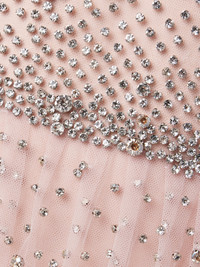 Costarellos' 'Jesenia' dress is "ethereal in every detail". It's made from tiers of tulle decorated with light-catching crystals and has a square neckline framed by fluttery sleeves. The full chiffon lining ensures proper coverage.