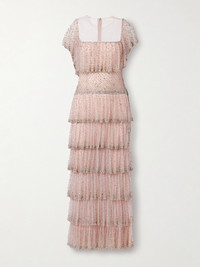 Jesenia Tiered Crystal-embellished Tulle Gown