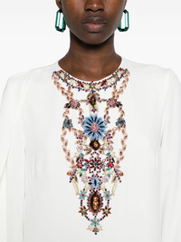 Makayla crepe gown Highlights - Off-white - Crepe texture - Round neck - Asymmetric long sleeves - Crystal embellishment - Straight hem - Full lining - Floor-length - Concealed rear zip fastening Imported Composition Polyester 100% SIZE & FIT Model measurements Height 5 ft 11 in(1.8 m) Bust/Chest 32.67 in(83 cm) Hips 36.22 in(92 cm) Waist 24.4 in(62 cm) FittingInformation Designed to be unstructured, offering a loose fit throughout Made from a midweight non-stretch fabric This piece fits true to size – take your usual size Washing instructions Hand Wash