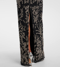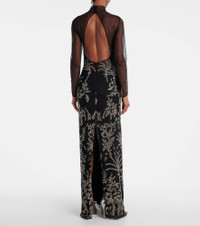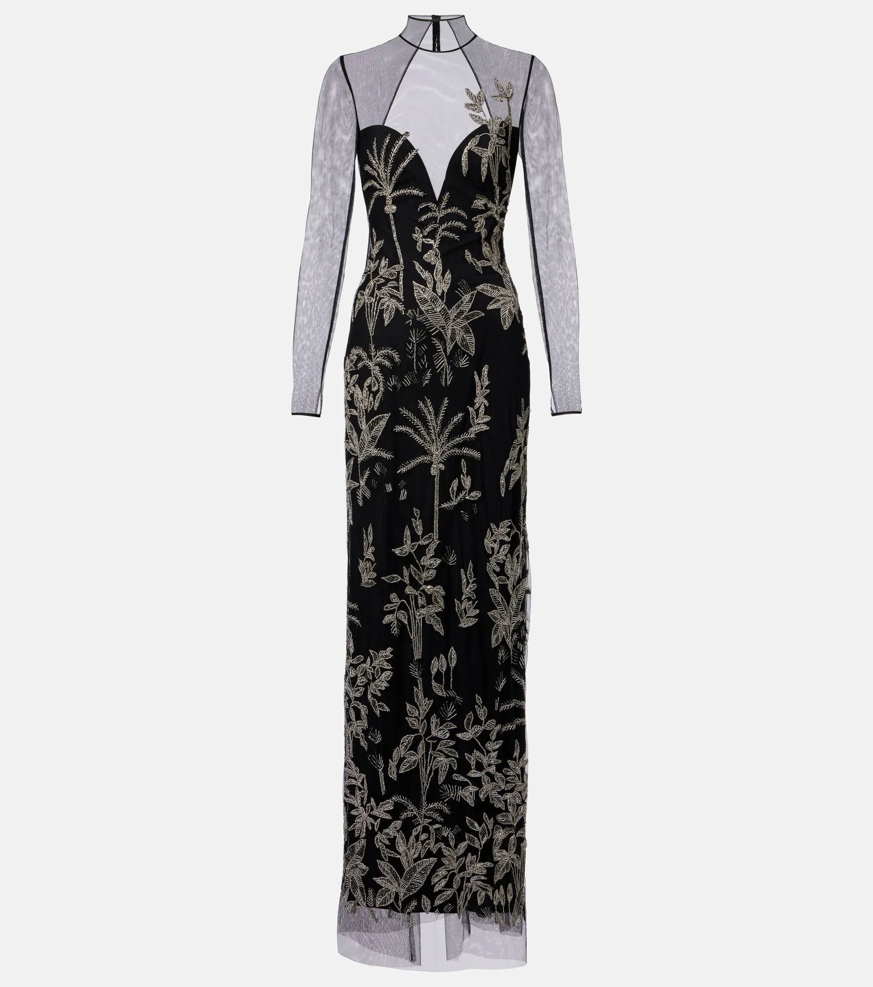 The Marcella tulle gown by Costarellos steals the spotlight with its glamorous design that flaunts beaded botanical motifs. Made from delicate tulle, this garment features a sheer bodice and sleeves, and the open back adds a charming final touch. Product Details - Material: 100% polyamide - Care instructions: dry clean - Made in Greece - Designer color name: Black-Silver embro - Item color: black, silver - Embroidery: 75% glass, 15% polyester, 10% brass - Lining: 100% polyester - Closure: buttoned back - Long vent - Fully lined - Item number: P01058414 Size & Fit - True to size - Low back - Fitted - Non-stretchy fabric - The model seen in the picture is 178cm-5'10" and wearing a size FR 36