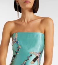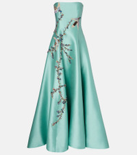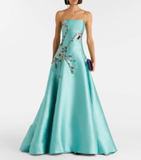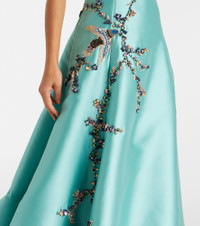 Based in Athens, Costarellos designs ethereal eveningwear that takes inspiration from art of ancient Greece. The Mavia gown is tailored to a sculptural A-line silhouette with a padded, strapless bodice and colorful embellishments. Product Details - Material: 85% polyester, 15% silk - Care instructions: dry clean - Made in Greece - Designer color name: Verde Aqua 258 - Item color: green - Lining: 100% polyester - Boning - Padded cups - Closure: concealed zipped back - Item number: P01080014 Size & Fit - Fits large to size - we recommend trying one size smaller - Strapless - Internal boned corset for support - Cinched waist - Non-stretchy fabric - Padded top - The model seen in the picture is 178cm-5'10" and wearing a size FR 34