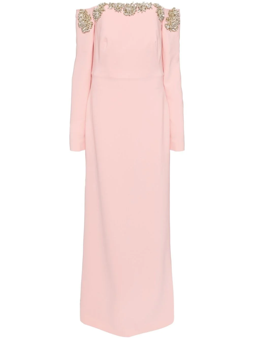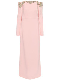 Meline gown Highlights - Salmon pink - Crepe texture - Concealed rear hook and zip fastening - Off-shoulder - Square neck - Crystal embellishment - Boned bodice - Open-shoulder sleeves - Cuff zips - Open back - Central rear vent - Full lining - Floor-length Imported Composition Outer: Polyester 92%, Polyurethane 8% Lining: Polyester 100% SIZE & FIT Model measurements Height 5 ft 10 in(1.77 m) Bust/Chest 27.95 in(71 cm) Hips 34.64 in(88 cm) Waist 22.83 in(58 cm) Measurement CHEST 33.07 in(84 cm) LENGTH 61.41 in(156 cm) WAIST 30.7 in(78 cm) SLEEVE LENGTH 24.01 in(61 cm) HIPS 37.79 in(96 cm) FittingInformation Designed for a slim fit that sits just away from the body offering a close yet comfortable fit The moulded cups offer shape and support Made from a midweight non-stretch fabric Washing instructions Dry Clean Only