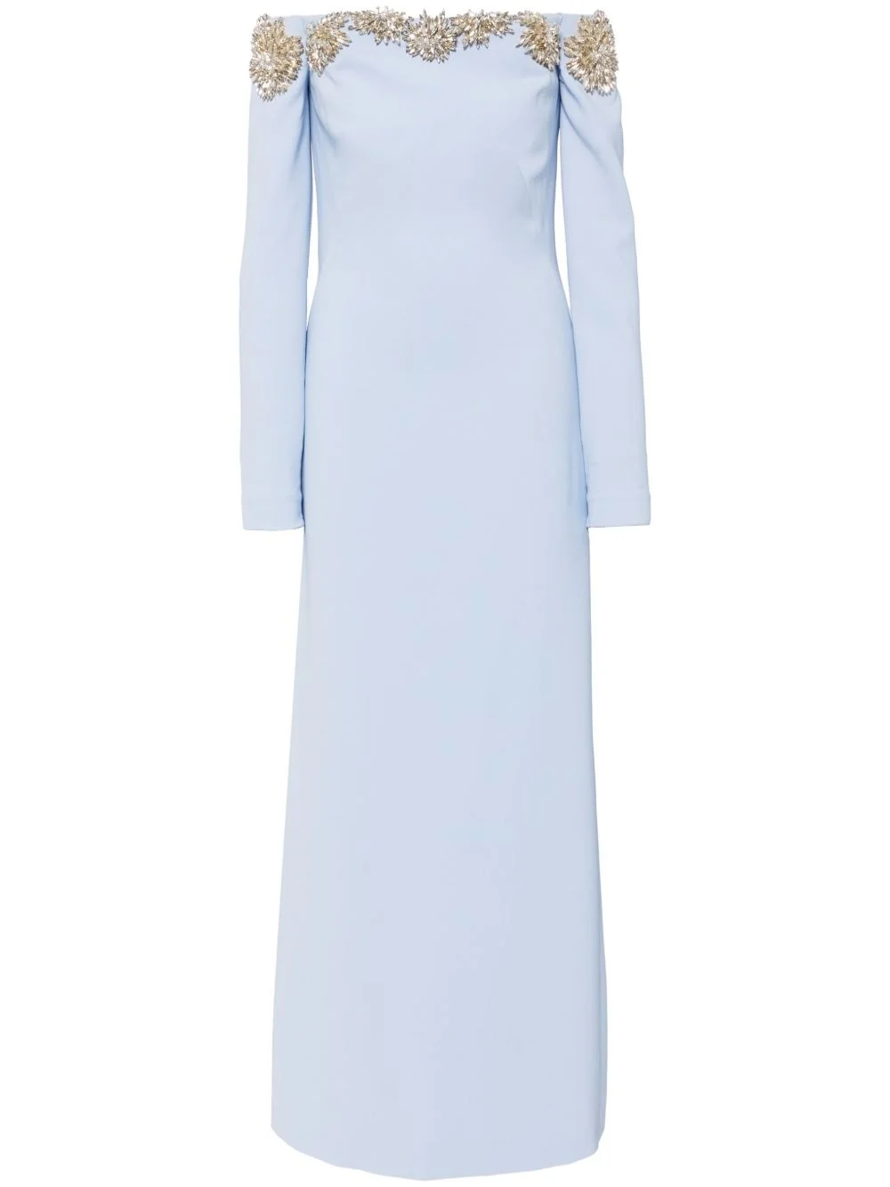 Meline gown Highlights - Lavender purple - Crepe texture - Concealed rear hook and zip fastening - Off-shoulder - Bustier-style neckline - Crystal embellishment - Open-shoulder sleeves - Cuff zips - Boned bodice - Central rear vent - Full lining - Floor-length Imported Composition Outer: Polyester 92%, Polyurethane 8% Lining: Polyester 100% SIZE & FIT Model measurements Height 5 ft 10 in(1.77 m) Bust/Chest 27.95 in(71 cm) Hips 34.64 in(88 cm) Waist 22.83 in(58 cm) Measurement CHEST 31.49 in(80 cm) LENGTH 61.41 in(156 cm) WAIST 29.13 in(74 cm) SLEEVE LENGTH 24.01 in(61 cm) HIPS 36.22 in(92 cm) FittingInformation Designed for a slim fit that sits just away from the body offering a close yet comfortable fit The moulded cups offer shape and support Made from a midweight non-stretch fabric