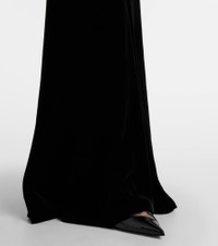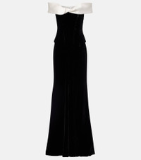 Based in Athens, Costarellos designs ethereal eveningwear that takes inspiration from the art of ancient Greece. This bustier gown is made from velvet to an off-shoulder silhouette and features an asymmetric hemline that gently elongates at the back. Product Details - Material: 57% rayon, 24% polyester, 19% silk - Care instructions: dry clean - Made in Greece - Designer color name: Black - Item color: black, white - Lining: 78% polyester, 22% cotton - Boning - Closure: concealed zipped back - Item number: P01102918 Size & Fit - True to size - Off-the-shoulder - Internal boned corset for support - Fitted - Non-stretchy fabric - The model seen in the picture is 178cm-5'10" and wearing a size FR 36