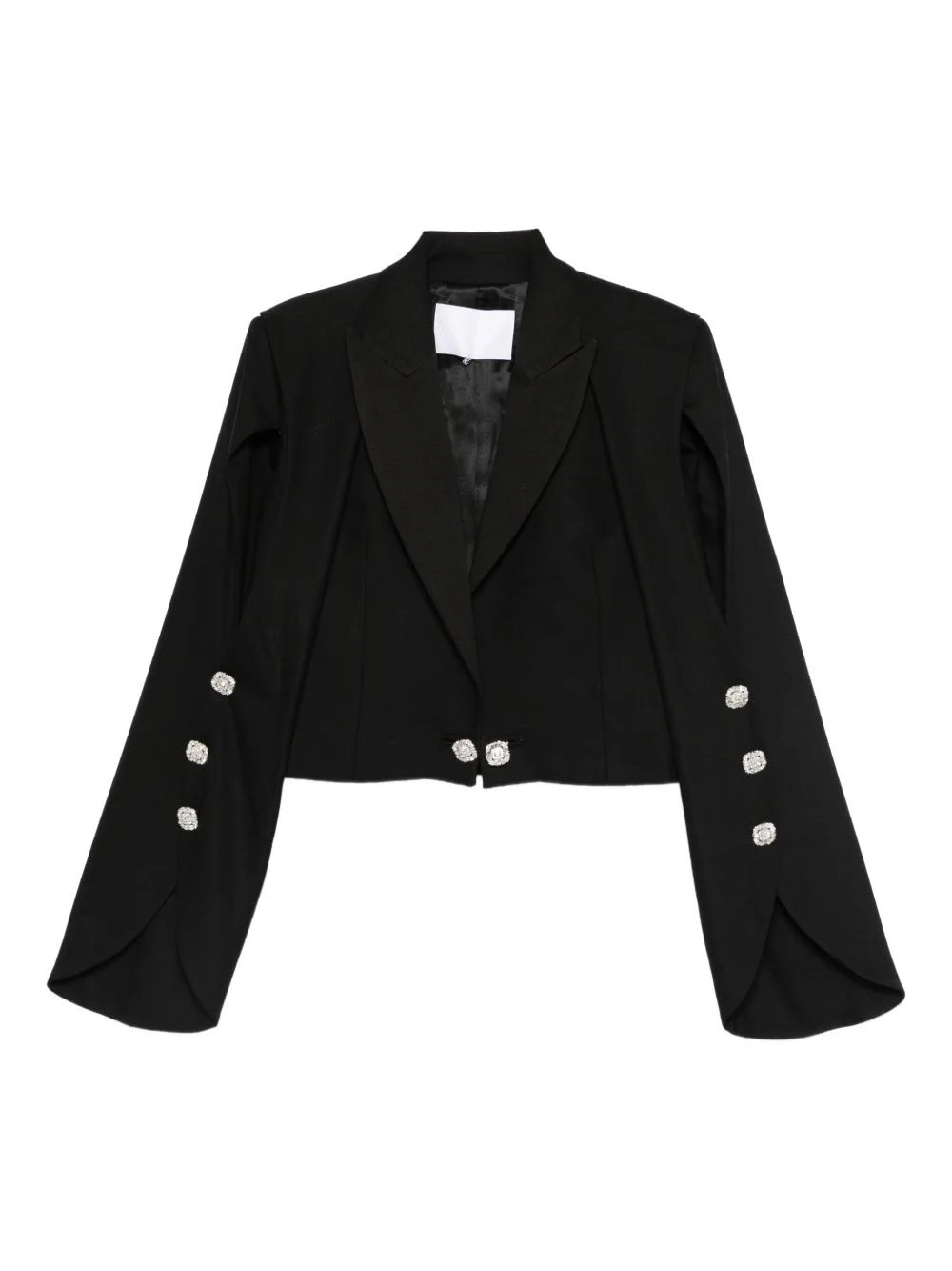 peak-lapel cropped blazer Highlights - Black - Wool - Embellished buttons - Peak lapels - Cropped style Imported Composition Wool 100% SIZE & FIT Model measurements Height 5 ft 8 in(1.73 m) Bust/Chest 29.92 in(76 cm) Hips 33.07 in(84 cm) Waist 23.22 in(59 cm) Washing instructions Read Manufacturer Guidelines