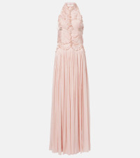Based in Athens, Costarellos designs ethereal eveningwear that takes inspiration from art of ancient Greece. This georgette gown showcases a charming ruched design and sparkling crystal detailing on the bodice and is finished with a halterneck. Product Details - Material: 81% polyester, 19% polyamide - Care instructions: dry clean - Made in Italy - Designer color name: Nude Pink 967 - Item color: pink - Hardware color: silver - Boning - Closure: buttoned back, concealed zipper, zipped side, hook fastening - Item number: P01058562 Size & Fit - True to size - Low back - Cinched waist - Non-stretchy fabric - The model seen in the picture is 178cm-5'10" and wearing a size FR 36