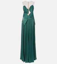 Based in Athens, Costarellos designs ethereal eveningwear that takes inspiration from ancient Greece. The Serenne gown has a trompe-l'œil effect thanks to a sheer bodice with overlaying leaves at the bust, falling elegantly to the floor with its pleated skirt. Product Details - Material: 88% polyester, 12% polyamide - Care instructions: dry clean - Made in Italy - Color: green - Designer color name: Evergreen 2472 - Item color: green - Closure: concealed zipped back - Item number: P01127377 Size & Fit - True to size - Low back - Semi-sheer - Cinched waist - Non-stretchy fabric - The model seen in the picture is 178cm-5'10" and wearing a size FR 36