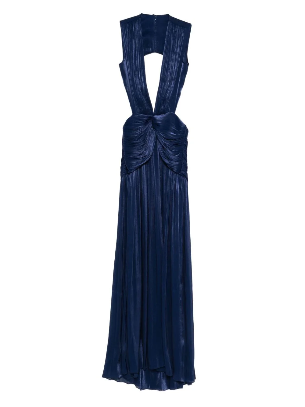 Silla pleated cowl-neck maxi dress Highlights - Navy blue - Pleated fabric - Cowl neck - Sleeveless - Keyhole back - Gathered waist Imported Composition Polyester 100% SIZE & FIT Model measurements Height 5 ft 9 in(1.75 m) Bust/Chest 32.67 in(83 cm) Hips 36.22 in(92 cm) Waist 24.8 in(63 cm) Washing instructions Dry Clean Only