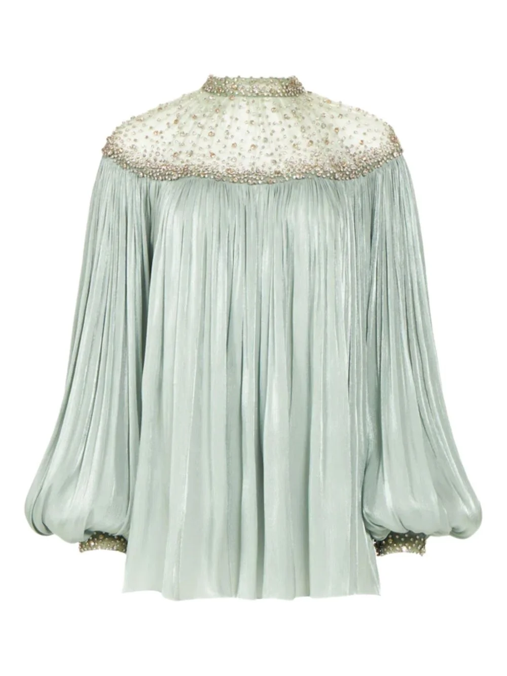 Timea crystal-embellished blouse Highlights - Mint green - Pleated detailing - Crystal embellishment - Balloon sleeves - Mock neck Imported Composition Polyester 100% Washing instructions Read Manufacturer Guidelines