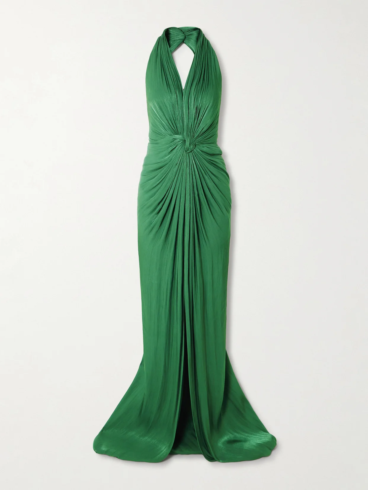 EXCLUSIVE AT NET-A-PORTER. Costarellos' gown embodies Old Hollywood glamour. It's made from shimmering georgette with a plunging halterneck and twisted waist that creates the most beautiful drape. The dramatic front slit is perfect for showing off your heels.