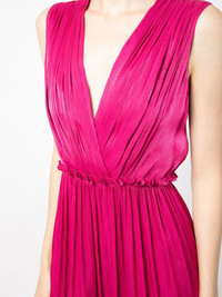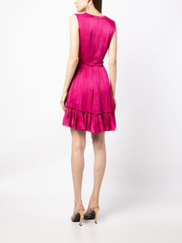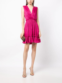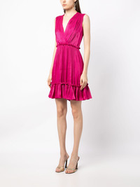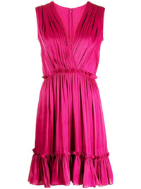 V-neck flared minidress Highlights - Magenta - V-neck - Sleeveless - Flared - Rear zip fastening - Ruffle hem - Thigh-length Imported Composition Body: Polyester 100% SIZE & FIT Model measurements Height 5 ft 10 in(1.78 m) Bust/Chest 30.31 in(77 cm) Hips 34.64 in(88 cm) Waist 24.01 in(61 cm) FittingInformation Designed for a close fit at the chest and waist with a loose fit at the hip Made from a midweight non-stretch fabric This piece fits true to size – take your usual size