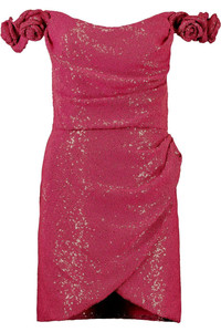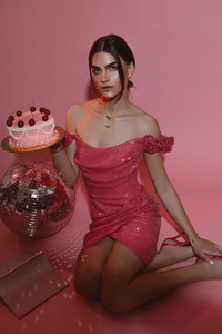 DETAILS AND INSIGHT Costarello vespera dress in fusion pink. 100% PL PES Mild Dry Clean Made in Greece Style PS24-22-FUSION PINK