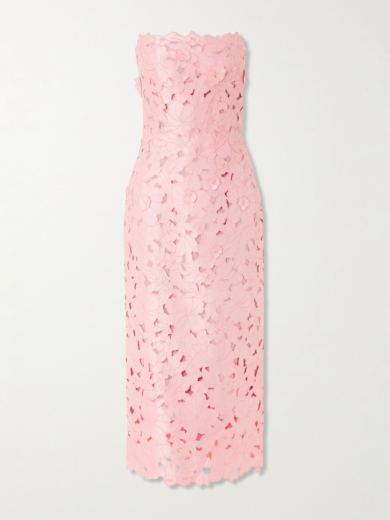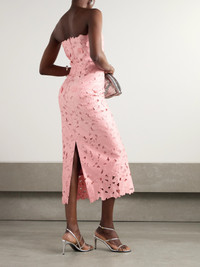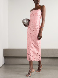 Delmara Strapless Cutout Embroidered Satin Midi Dress