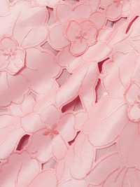 Costarellos is renowned for its beautiful eveningwear. This strapless 'Delmara' dress is made from satin in a pretty pastel hue the label calls 'Pink Sorbet'. It's overlaid with embroidered 3D flowers and has allover cutouts to create a lace-like effect.