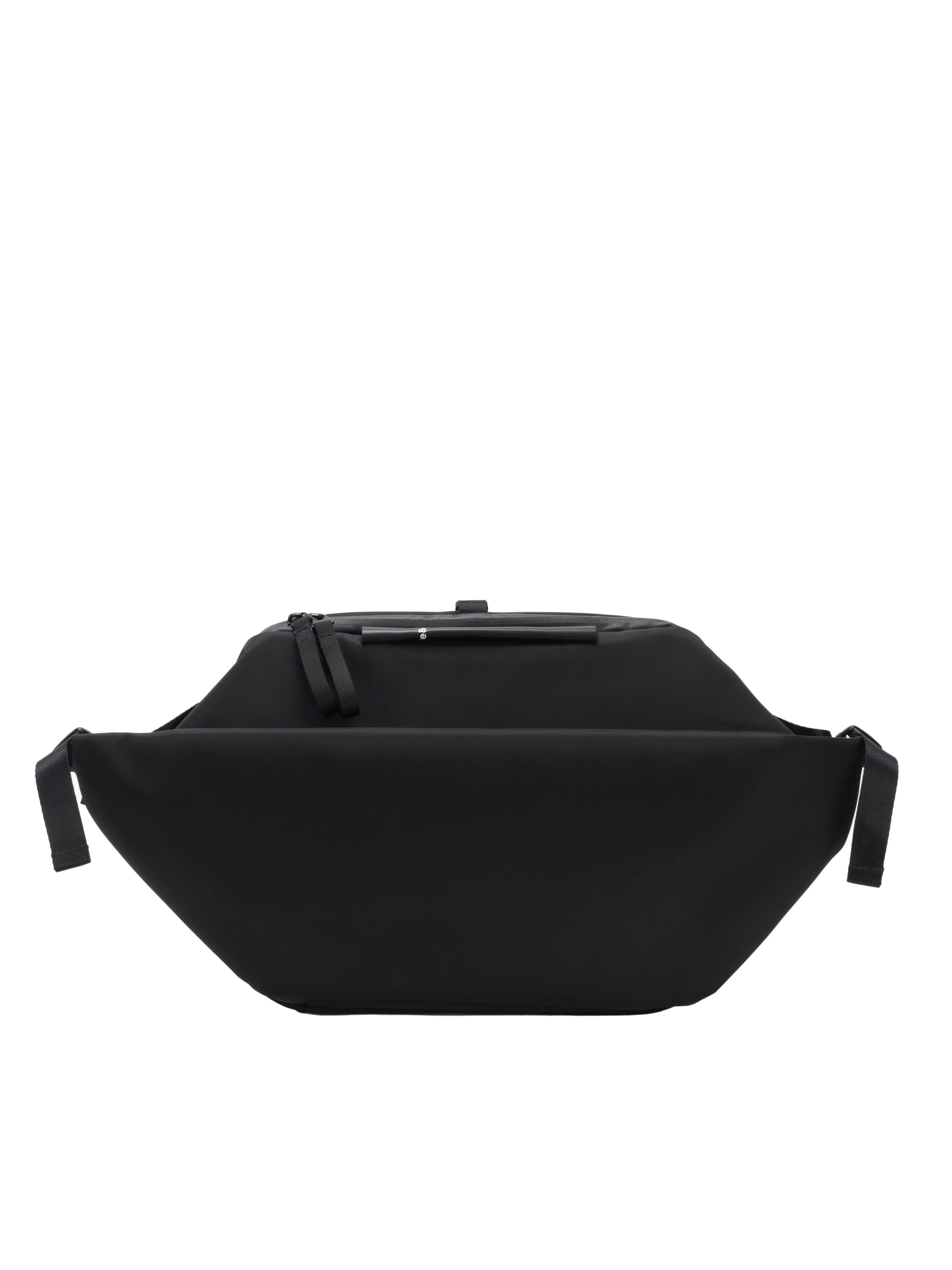 Isarau L Sleek in Black from Cote & Ciel Highlights - black - one main compartment close to the body - sleek structure - can be worn in a number of ways, across the body, chest or back - capacity: 14.5 L - device: Laptops up to 14'' - device pocket measurements (cm: WxHxD): 34*21 - features: Water Repellent; Laptop Compartment - depth: 55 mm, height: 270 mm, width: 580 mm Made in China Designer ID: 29213 Color ID: 001 Black Materials Front Shell: 100% NYLON Back Shell: 100% POLYESTER Lining: 100% POLYESTER - Avoid contact with any type of chemical cleaning agents as those can result in fabric damage and discolouration. - Clean with a damp cloth to remove dust and other dirt.