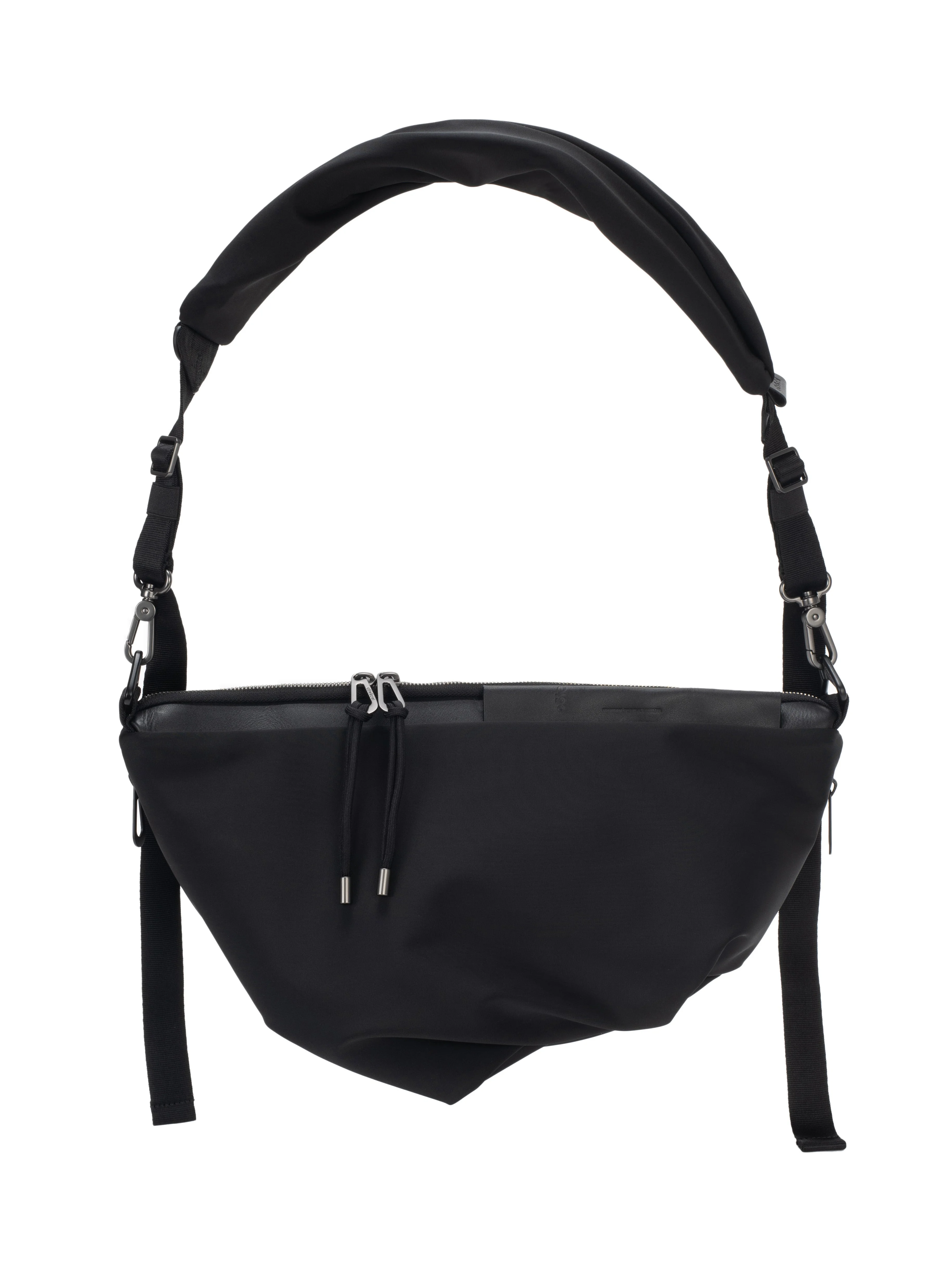 Orne Onyx in Black from Cote&Ciel Highlights - black - crossbody style - structural shape - water repellent - adjustable shoulder strap - shoulder strap with zipper compartment - loading weight: 5 Kg - height: 225 mm - width: 410 mm - weight: 0.66 Kg Made in China Designer ID: 29214 Colour ID: 001 Black Materials Front Shell: 82% NYLON, 18% ELASTANE Back Shell: 82% NYLON, 18% ELASTANE Lining: 100% NYLON - Avoid contact with any type of chemical cleaning agents as those can result in fabric damage and discolouration. - Clean with a damp cloth to remove dust and other dirt.