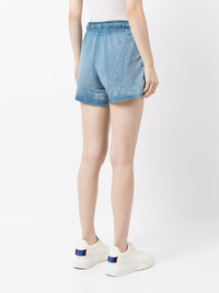 faded raw-cut track shorts blue cotton faded effect slip pockets to the sides raw-cut hem elasticated drawstring waistband Made in United States Composition Cotton 100% SIZE & FIT Model measurements Height 5 ft 10 in(1.79 m) Bust/Chest 31.49 in(80 cm) Hips 35.03 in(89 cm) Waist 24.01 in(61 cm) FittingInformation This piece fits true to size. We recommend you get your regular size Cut for a relaxed fit Made with a mid-weight fabric Washing instructions Machine Wash