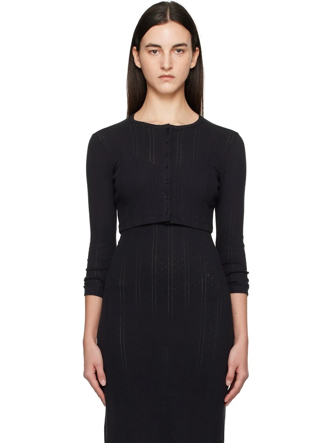 Pointelle-knit GOTS-certified organic cotton cardigan. · Picot trim at crewneck · Button closure · Cropped hem Supplier color: Black 100% organic cotton. Made in Portugal 251492F095002