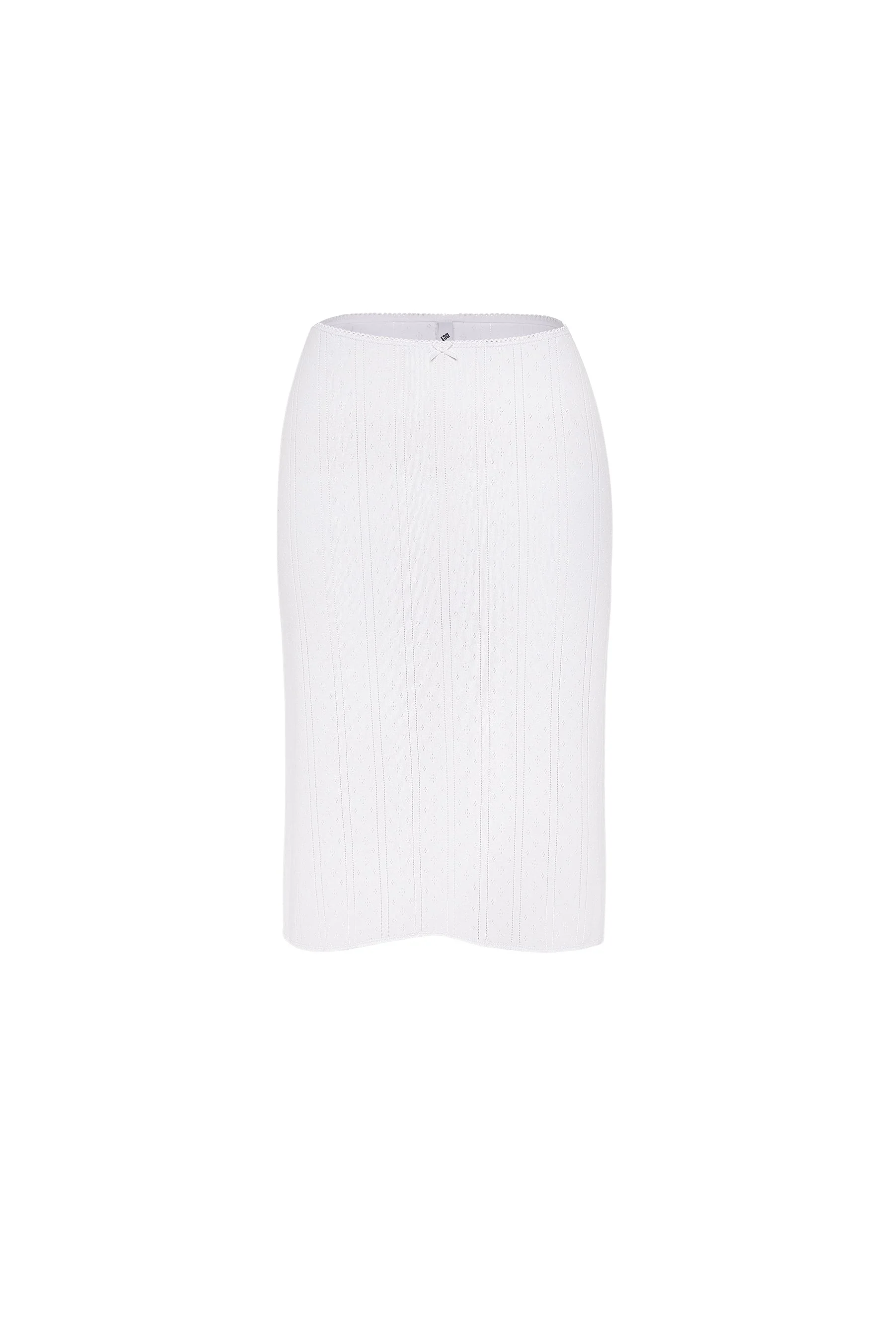 Your new favourite, flirty slip skirt. A classic style redefined a la Cou Cou for effortless, everyday comfort. Made to flirt, dance and twirl, this pull-on piece features a subtle flounce hem, scalloped picot trim detailing and finished with a petit baby center-front bow. FABRIC & CARE Consciously made with our signature, bespoke 100% Organic Cotton Pointelle. Fabric: 100% Organic Cotton Pointelle Picot Trim: 70% Polyamide and 30% Spandex To take care and keep your Cou Cou's looking cuter, for longer, just wash your pieces on gentle, lay flat to dry & voila! These more gentle care methods aren’t just better for your Cou Cou's, they’re better for the planet, too. Designed in London. Made in Morocco. SIZE & FIT Flounce hem, scalloped picot-trim detailing, finished with a petit center-front bow. The Slip Skirt is considered true to size, however, if you want to style it lower on the waist or are in between sizes, we recommend sizing up. In order of appearance: Olga wears a S. Paola wears a size S. Amata wears a size XS. Sylvie wears an XL in The Slip Skirt.