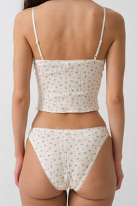 Our signature crop cami in Blue Fields. Cut to recall your favourite bralette, The Cami provides just the right amount of coverage for everyday wear. FABRIC & CARE Consciously made with our signature, bespoke 100% Organic Cotton Pointelle. In our second-ever print, Blue Fields. Sourced from the English 1900’s archive & reimagined a la Cou Cou. Fabric: 100% Organic Cotton Pointelle Straps: 85% Polyamide and 15% Elastane French Lace: 90% Polyamide and 10% Elastane To take care and keep your Cou Cou's looking cuter, for longer, just wash your pieces on gentle, lay flat to dry & voila! These more gentle care methods aren’t just better for your Cou Cou's, they’re better for the planet, too. Designed in London. Made in Portugal. SIZE & FIT Cropped length, slight v-neck and finished with 2 petite bows. The Cami fits true to size. If you’re in-between sizes, we recommend sizing down. In order of appearance: Annastasia wears a S. Jade wears XS. Carmen wears XL in The Cami.