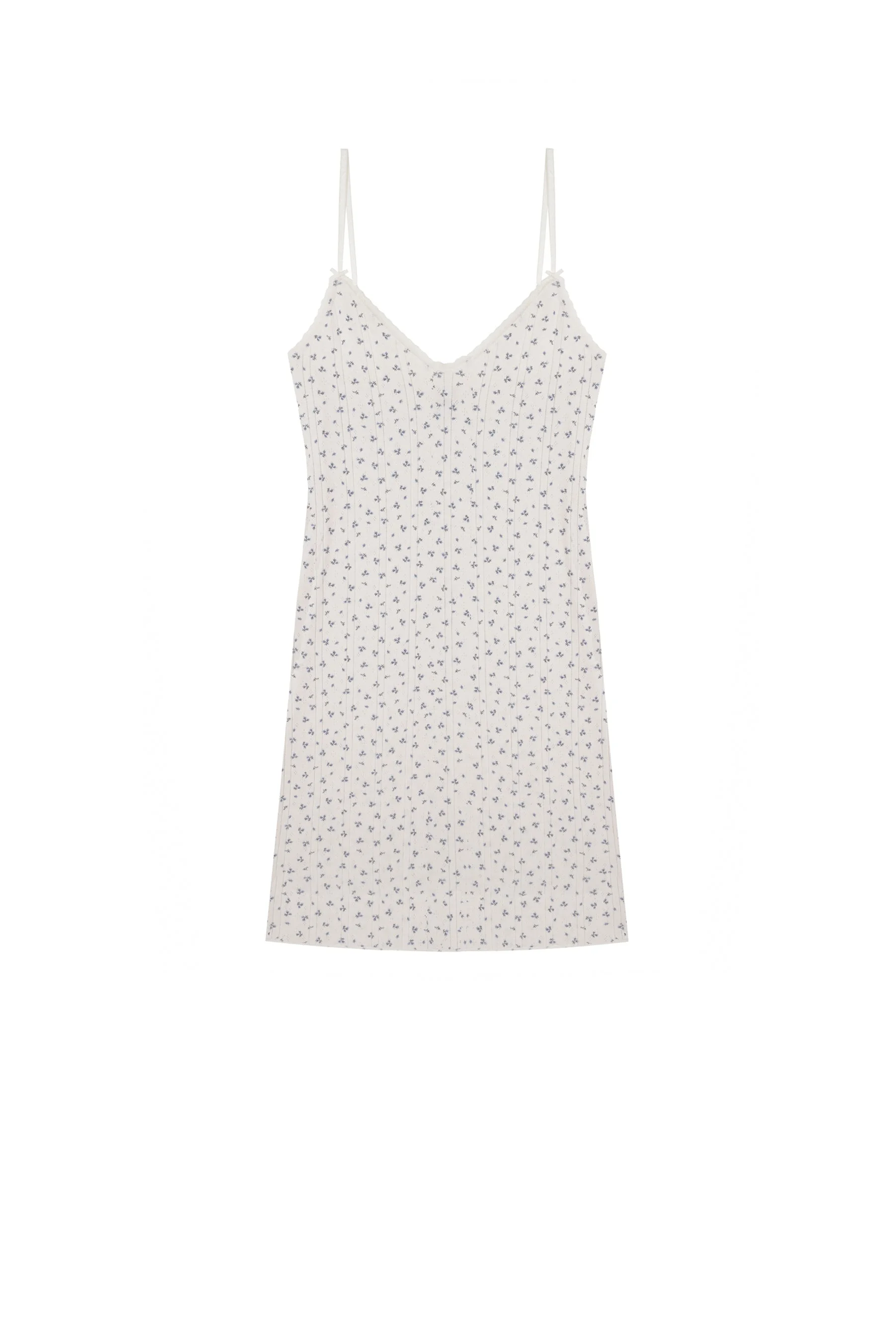 She's mini. She's flirty. She's comfy. Inspired by your favourite cami and 90’s slip silhouettes ~ with her flirty straps and mini length, she’s as versatile as you are. FABRIC & CARE Consciously made with our signature, bespoke 100% Organic Cotton Pointelle. In our second-ever print, Blue Fields. Sourced from the English 1900’s archive & reimagined a la Cou Cou. Fabric: 100% Organic Cotton Pointelle Straps: 85% Polyamide and 15% Elastane French Lace: 90% Polyamide and 10% Elastane To take care and keep your Cou Cou's looking cuter, for longer, just wash your pieces on gentle, lay flat to dry & voila! These more gentle care methods aren’t just better for your Cou Cou's, they’re better for the planet, too. Designed in London. Made in Portugal. SIZE & FIT Mini length with a ever-so-subtle, flirty flare at the hem. Slight French Lace v-neck and delicate strapping finished with 2 petit bows. The Cami Slip fits true to size. If you’d prefer a more fitted, mini look – we recommend sizing down. If you’d prefer more length, size up. Annastasia wears a S in The Cami Slip.