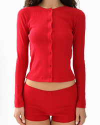 Perfect to pair with all your favorite Cou Cou essentials, The Cardigan is our take on that perfect, flirty cardi your mom used to wear in the 80’s. FABRIC & CARE Consciously made with our signature, bespoke 100% Organic Cotton Pointelle. Fabric: 100% Organic Cotton Pointelle To take care and keep your Cou Cou's looking cuter, for longer, just wash your pieces on gentle, lay flat to dry & voila! These more gentle care methods aren’t just better for your Cou Cou's, they’re better for the planet, too. Designed in London. Made in Portugal. SIZE & FIT Featuring a shrunken, full length bodice and sleeves, delicate picot detailing on the neckline and petit front-button fastening. We typically recommend to size up in The Cardigan. Jade wears an XS in The Cardigan.