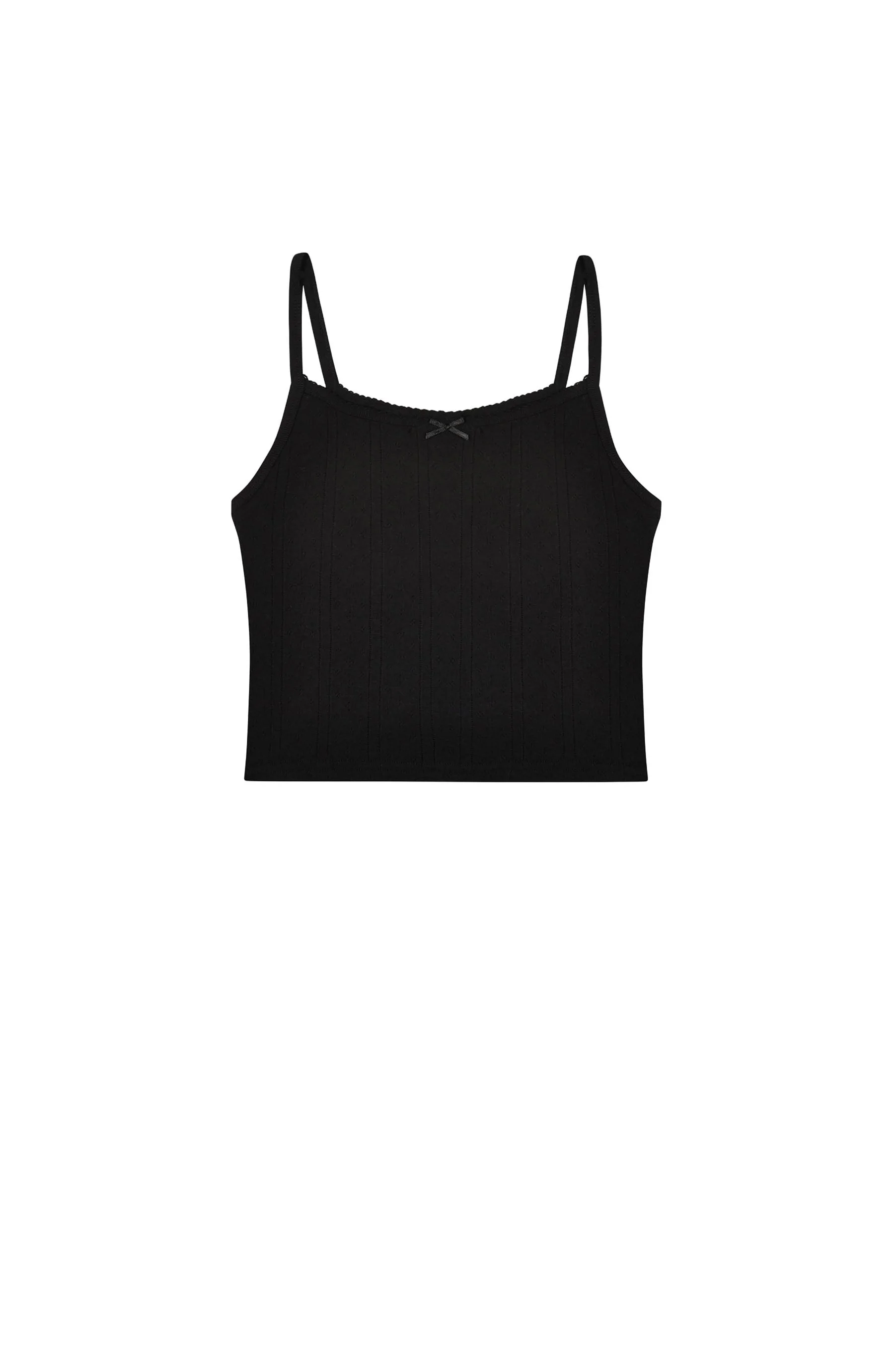 Inspired by the ones you used to wear. Featuring the perfect scoop-neck silhouette and delicate picot-trim detailing. The Picot Tank is your new everyday go-to crop that could’ve been found that summer thrifting on the Amalfi coast. FABRIC & CARE Consciously made with our signature, bespoke 100% Organic Cotton Pointelle. Fabric: 100% Organic Cotton Pointelle To take care and keep your Cou Cou's looking cuter, for longer, just wash your pieces on gentle, lay flat to dry & voila! These more gentle care methods aren’t just better for your Cou Cou's, they’re better for the planet, too. Designed in London. Made in Portugal. SIZE & FIT Features a cropped body, subtle scooped neckline, delicate picot trim detailing and centre-front baby bow. The Picot Tank is considered standard in sizing. In order of appearance: Daniella wears an XS. Lilah wears a S and Sylvie wears a L in The Picot Tank.