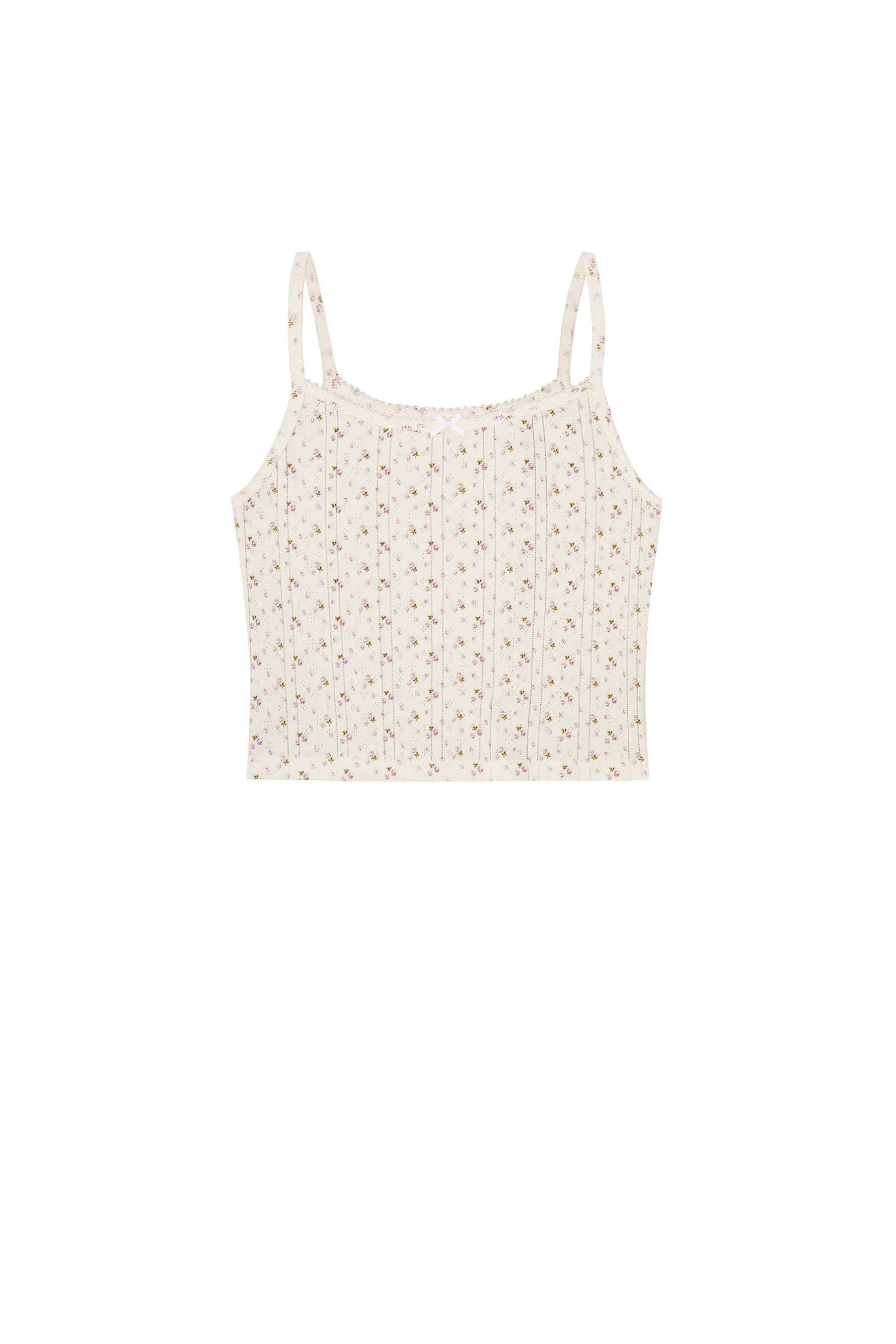 Inspired by the ones you used to wear. Featuring the perfect scoop-neck silhouette and delicate picot-trim detailing. The Picot Tank is your new everyday go-to crop that could’ve been found that summer thrifting on the Amalfi coast. FABRIC & CARE Consciously made with our signature, bespoke 100% Organic Cotton Pointelle. Fabric: 100% Organic Cotton Pointelle To take care and keep your Cou Cou's looking cuter, for longer, just wash your pieces on gentle, lay flat to dry & voila! These more gentle care methods aren’t just better for your Cou Cou's, they’re better for the planet, too. Designed in London. Made in Portugal. SIZE & FIT Features a cropped body, subtle scooped neckline, delicate picot trim detailing and centre-front baby bow. The Picot Tank is considered standard in sizing. In order of appearance: Amata wears an XS. Lilah and Rene wear a S in The Picot Tank.