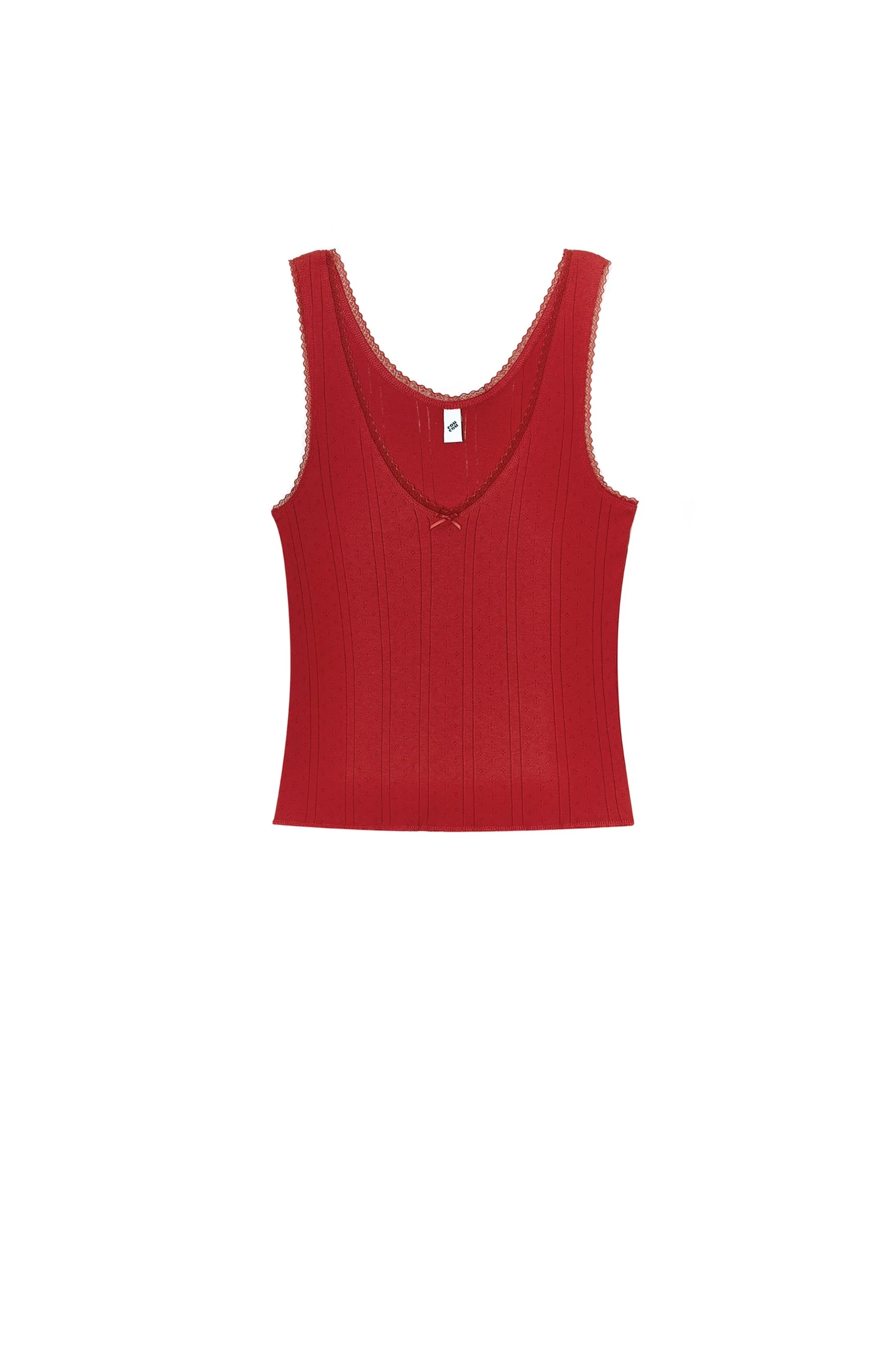 Inspired by your favourite childhood vest, reimagined with the effortless romance of 90’s Gwyneth Paltrow. Trimmed with our signature French Lace & finished with a petit centre-front bow a la Cou Cou. FABRIC & CARE Consciously made with our signature, bespoke 100% Organic Cotton pointelle. Fabric: 100% Organic Cotton Pointelle French Lace: 90% Polyamide and 10% Elastane To take care and keep your Cou Cou's looking cuter, for longer, just wash your pieces on gentle, lay flat to dry & voila! These more gentle care methods aren’t just better for your Cou Cous, they’re better for the planet, too. Designed in London, made in Portugal. SIZE & FIT Your favourite childhood vest, reimagined. Featuring a scoop neckline & slightly cropped body, sitting just below the belly button. Trimmed with our signature French Lace & finished with a baby, centre-front bow. The Scoop Tank fits true to size. If you’re in-between sizes, we recommend sizing down. In order of appearance: Isabella wears an XS. Jade wears an XS in The Scoop Tank.