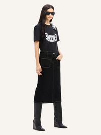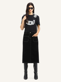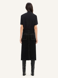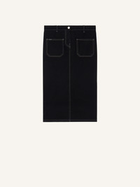 2-POCKET TOPSTITCHED DENIM MIDI SKIRT