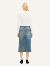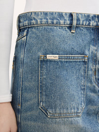 Straight denim midi skirt with two patch pockets at front and back. Courreges logo on front pocket and AC logo on back pocket. Slit at back. The model is 1.76m tall and wears a size 26. DETAILS Composition: 100% cotton Country of Manufacture: IT SKU: 324DJU183DE00337052 Color: Vintage Medium Blue