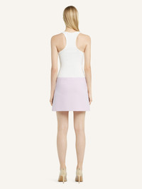 A-line mini skirt with two front welt pockets. Front bottom embroidered AC logo. The model is 1.77m tall and wears a size 36. DETAILS Composition: 89% polyester, 11% polyurethane Country of Manufacture: RO SKU: 125CJU226PL01596017 Color: Salt Pink