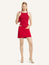 Heritage mini skirt with welt pockets and AC logo on the bottom. Side zip fastening. The model is 1.77m tall and wears a size 36. DETAILS Composition: 89% polyester, 11% polyurethane Country of Manufacture: RO SKU: 125CJU226PL01594015 Color: Ruby