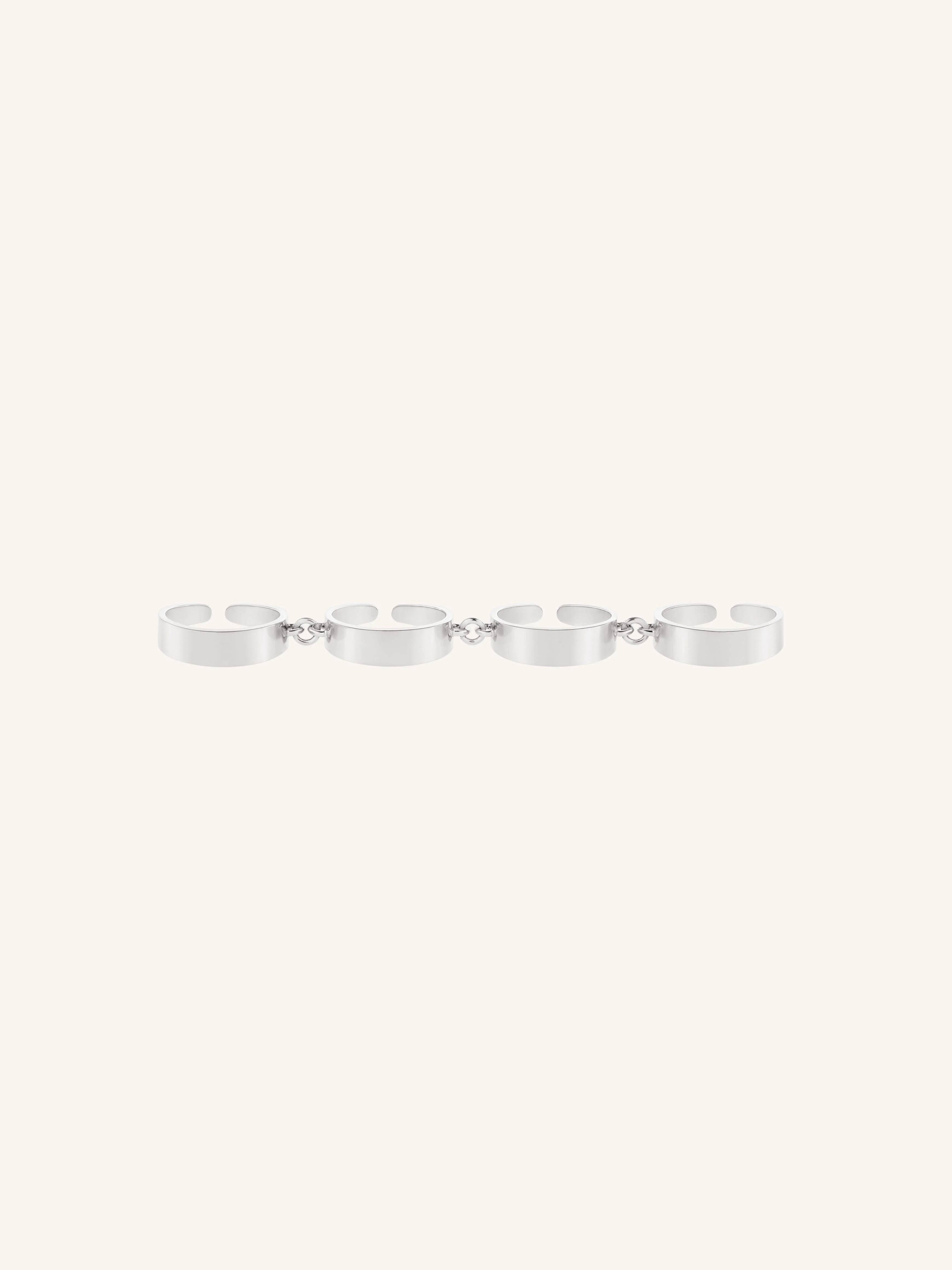 Silver-plated brass articulated 4-finger ring. Courreges logo engraved inside. DETAILS Composition: 100% brass Country of Manufacture: IT SKU: 425BBG041LA00019000 Color: Silver
