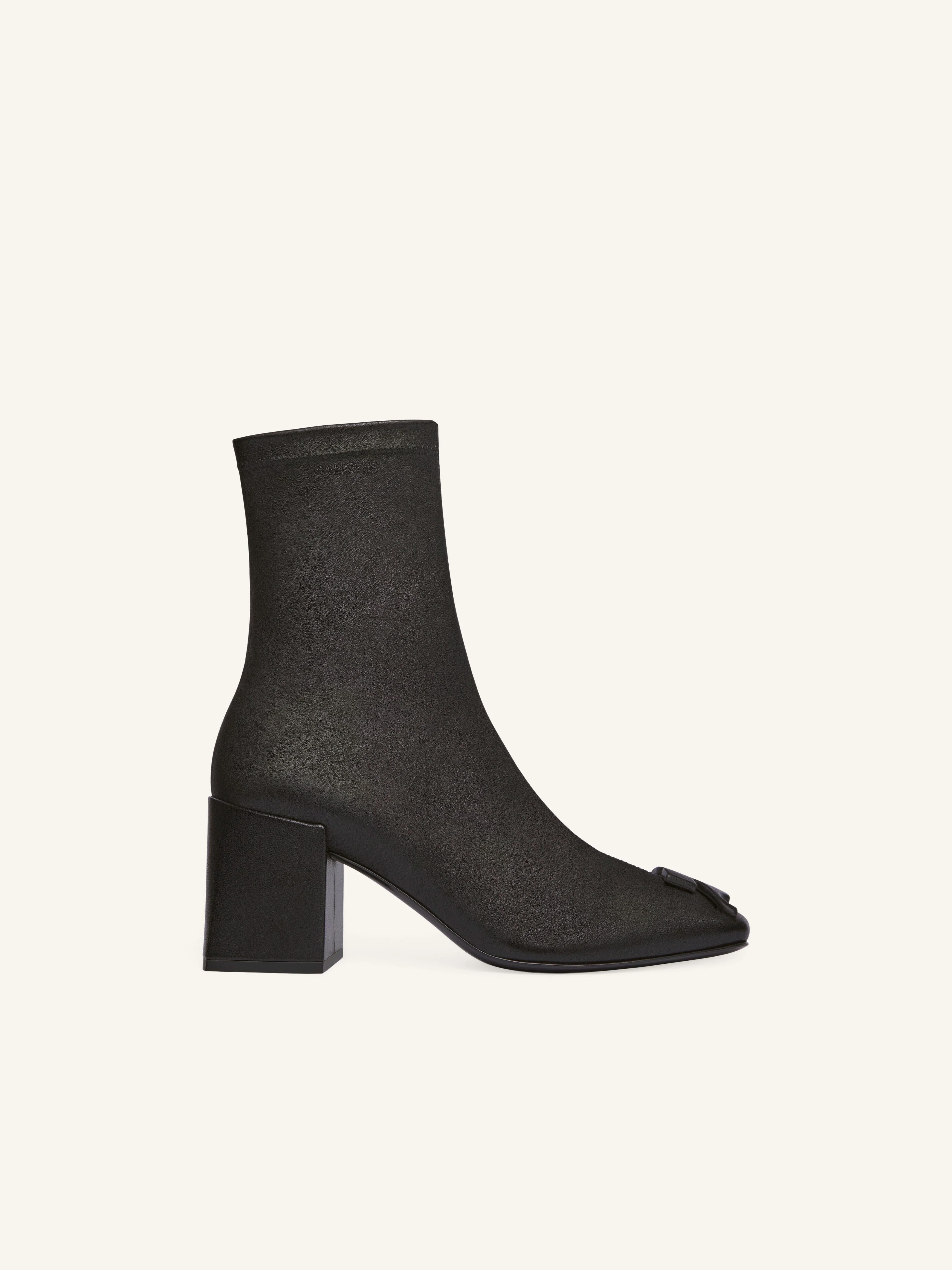 Iconic ankle boots in stretch lamb leather with covered AC logo on the front. Zipped closure, leather-covered block heel, and square toe. Heel height : 70 mm DETAILS Composition: 100% lamb leather Country of Manufacture: IT SKU: 325SAB021AG00349999 Color: Black