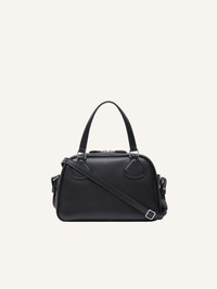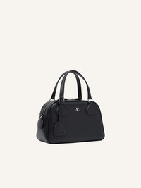 Smooth leather Bowling bag with AC logo on front and a key ring. Metal zipper closure. Short handles with removable and adjustable shoulder strap. Inside zipped pocket. Length: 24 cm Height: 16 cm Width: 12 cm DETAILS Composition: 100% calf leather Country of Manufacture: IT SKU: 324GSA133CR00659999 Color: Black