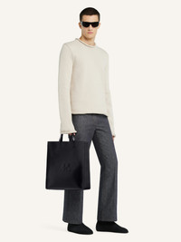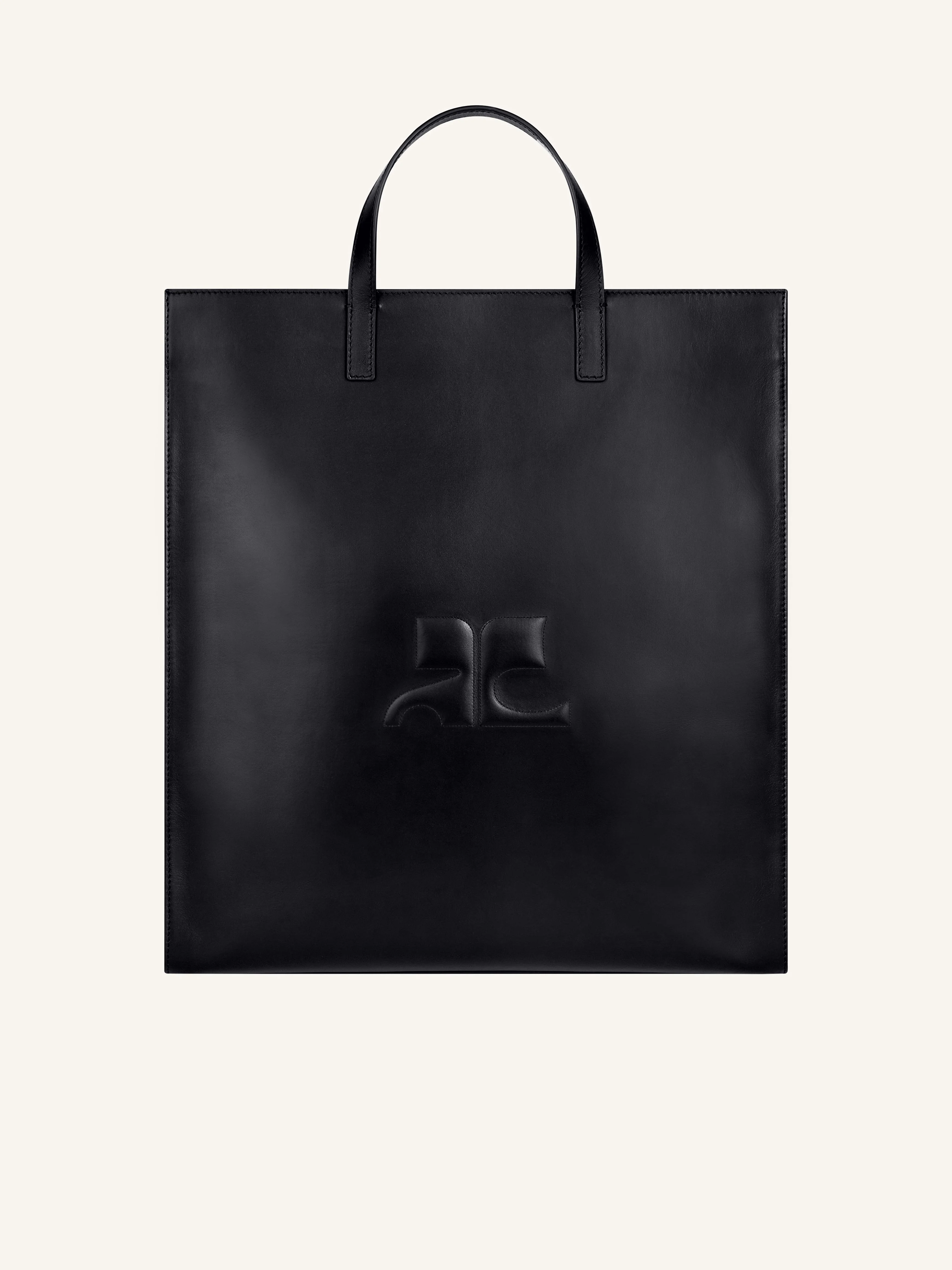 Shadow tote bag in smooth calf leather with shadow AC logo on front. Short carry handles and detachable, adjustable shoulder strap. Inside pocket and hook closure. Length: 35 cm Height: 48,5 cm Opening width: 32 cm Strap length: 108,5 cm DETAILS Composition: 100% calf leather Country of Manufacture: TR SKU: 125GSA166CR00659999 Color: Black