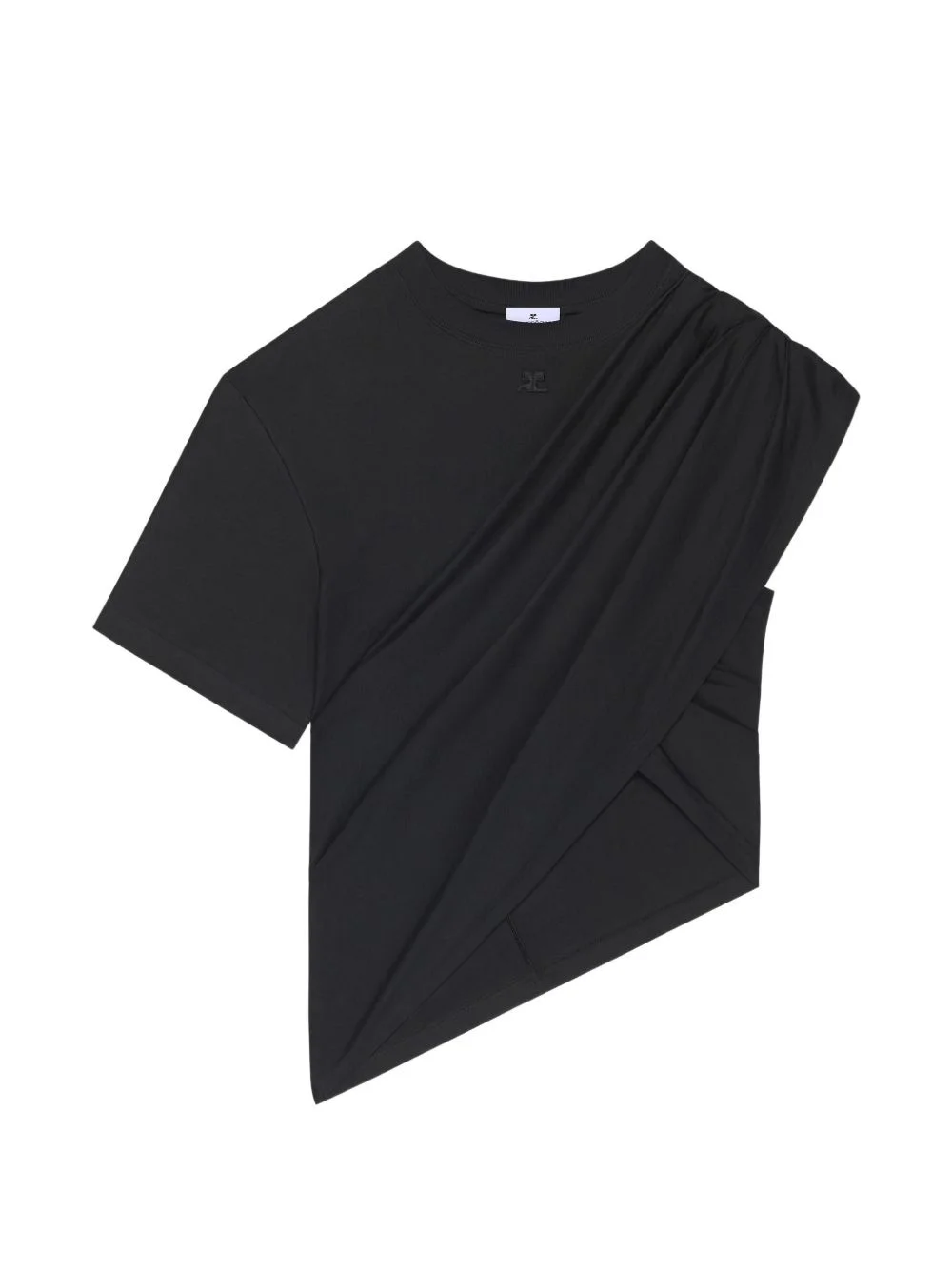 asymmetric draped T-shirt Highlights - Black - Draped detailing - Asymmetrical cropped hem - Short sleeves - Round neck Made in Italy Composition Cotton 100% Washing instructions Read Manufacturer Guidelines