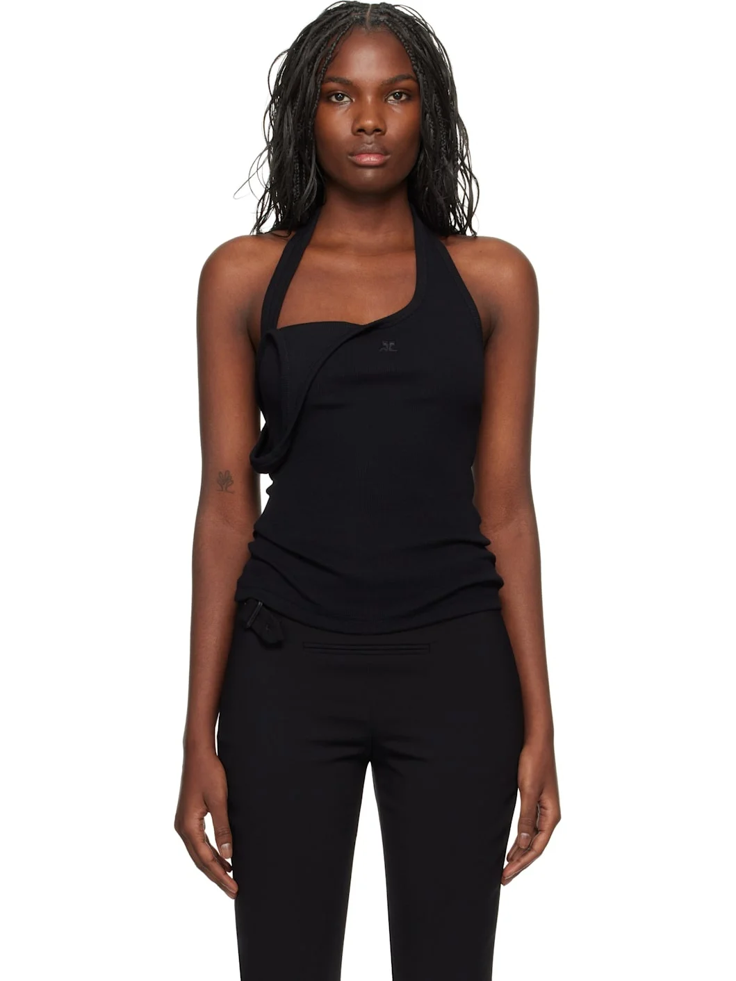 Ribbed stretch cotton jersey tank top. · Asymmetrical construction · Halter neck · Embroidered logo patch at chest · Low back Supplier color: Black 97% cotton, 3% elastane. Made in Portugal 242783F111016