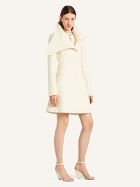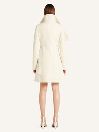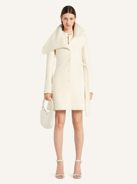 Fitted heritage wool coat with large collar, zipped sleeves and buttoned back belt. Front button closure and side pockets. The model is 1.77m tall and wears a size 36. DETAILS Composition: 97% wool, 3% silk Country of Manufacture: SK SKU: 325CMA230WO01180001 Color: Heritage White