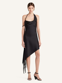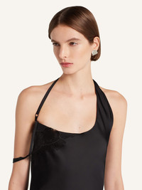 Asymmetrical satin dress with thin straps. Lace side slit and dropped strap. The model is 1.74m tall and wears a size 36. DETAILS Composition: 94% viscose, 6% elastane Country of Manufacture: IT SKU: 325CRO667VI00739999 Color: Black