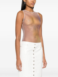 Aura tulle bodysuit Courreges bodysuit is named after the subtle ombre of rainbow hues that dissipate from the side, mimicking the look of the energy fields captured in aura photos. Without the seams and logo applique at the chest, the sheer tulle construction almost looks as though it’s part of the form. Highlights - Multicolour - Tulle netting - Stretch-design - Ombre effect - Concealed press-stud fastening at base - Crew neck - Sleeveless - Unlined - Just a reminder that this piece must be tried on over your own garments. Made in Italy Composition Polyamide 90%, Elastane 10% SIZE & FIT Model measurements Height 5 ft 11 in(1.8 m) Bust/Chest 30.7 in(78 cm) Hips 35.03 in(89 cm) Waist 24.4 in(62 cm) FittingInformation Designed for a close fit throughout Made from a lightweight stretch fabric, this piece offers elasticity and flexibility when worn This piece fits true to size – take your usual size Washing instructions Hand Wash