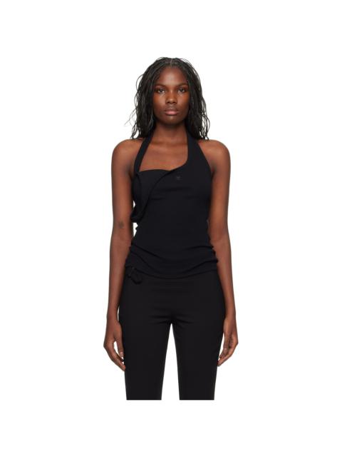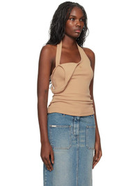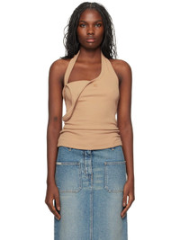 Ribbed stretch cotton jersey tank top. · Asymmetrical construction · Halter neck · Embroidered logo patch at chest · Low back Supplier color: Dune 97% cotton, 3% elastane. Made in Portugal 242783F111018