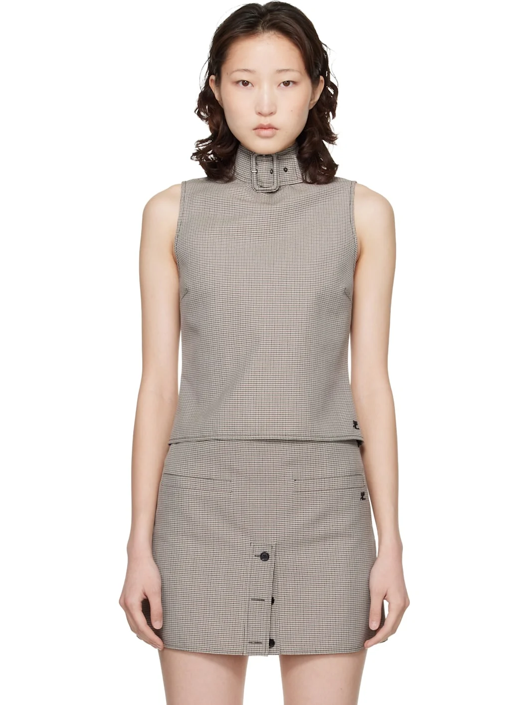 Wool-blend flannel top. · Jacquard houndstooth pattern throughout · Pin-buckle fastening at stand collar · Logo embroidered at side seam · Zip closure at back Supplier color: Natural/Red/Black 52% wool, 48% polyester. Made in Serbia 261783F111006