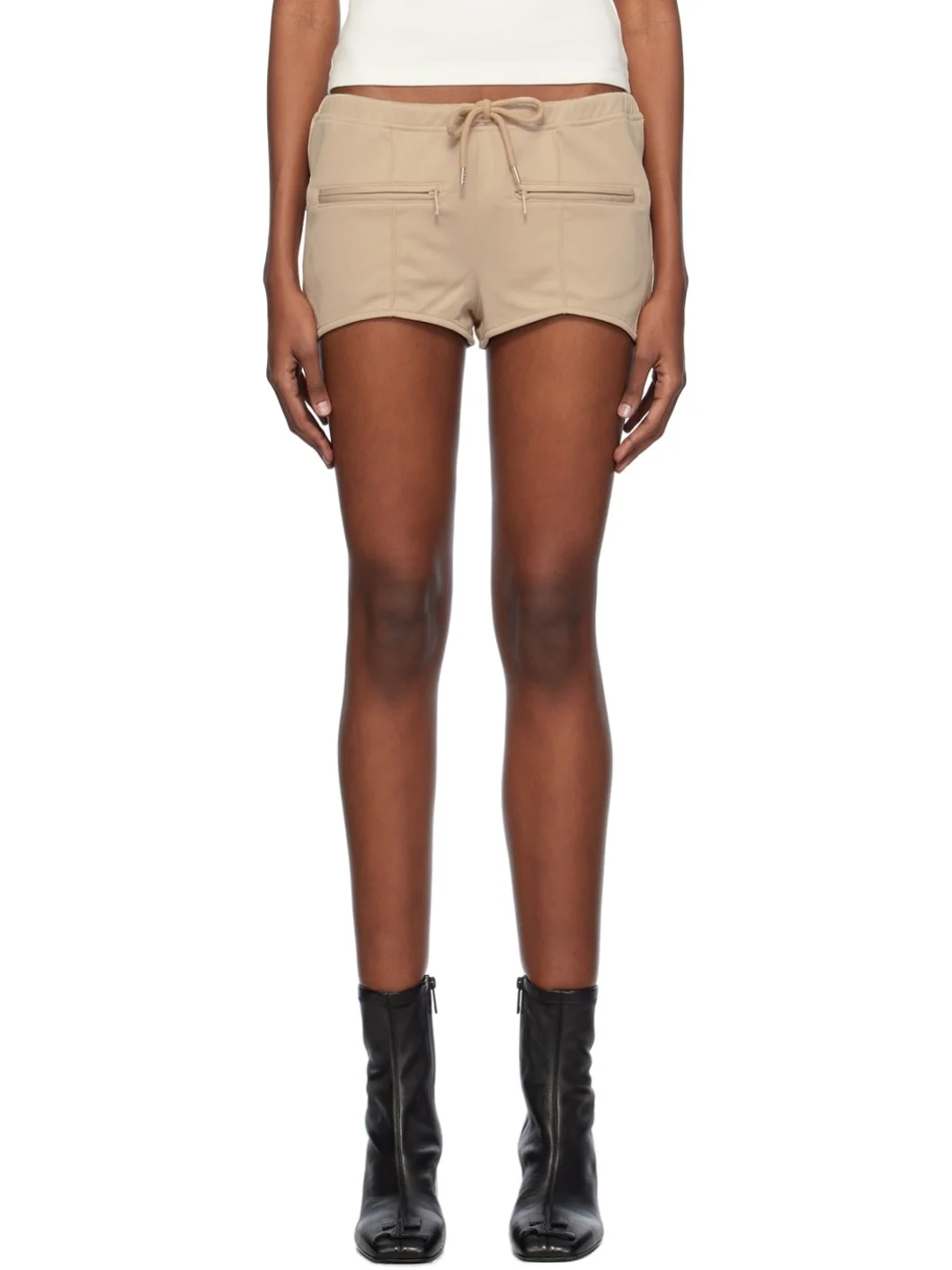 Polyester jersey shorts. · Drawstring at waistband · Logo applique at waistband · Three-pocket styling · Pinched seams at front and back · Logo flag at back Supplier color: Sand 100% polyester. Made in Portugal 241783F088002