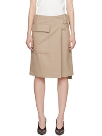 Cotton twill midi skirt. · Wrap construction · Logo-embroidered flap pocket at front · Pin-buckle closure at side seam Supplier color: Beige 100% cotton. Made in Romania 261783F092002