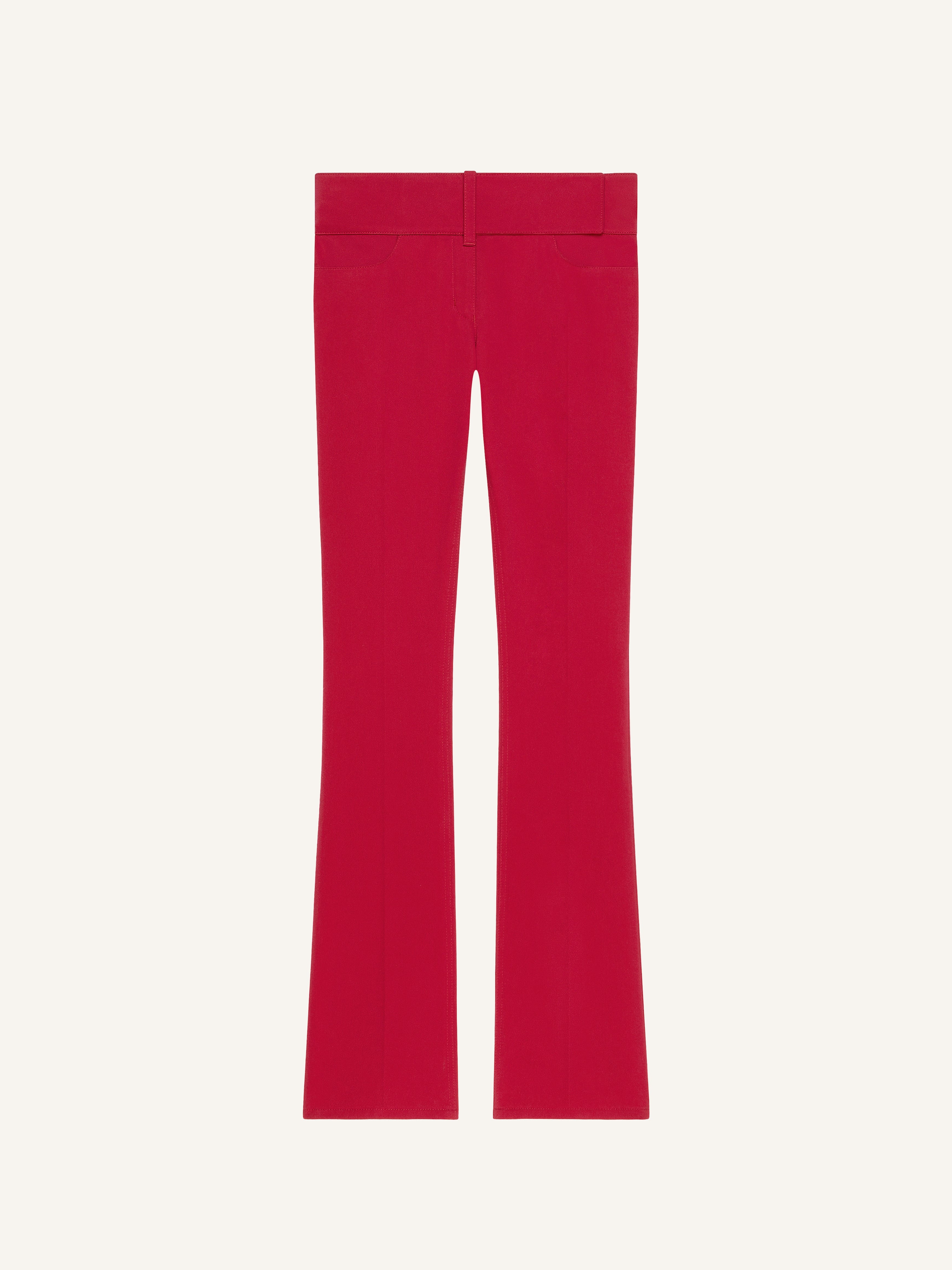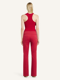 Polycotton bootcut pants with integrated seasonal belt and embroidered AC logo on the back. The model is 1.77m tall and wears a size 36. DETAILS Composition: 65% polyester, 35% cotton Country of Manufacture: RS SKU: 125CPA316PL01784015 Color: Ruby
