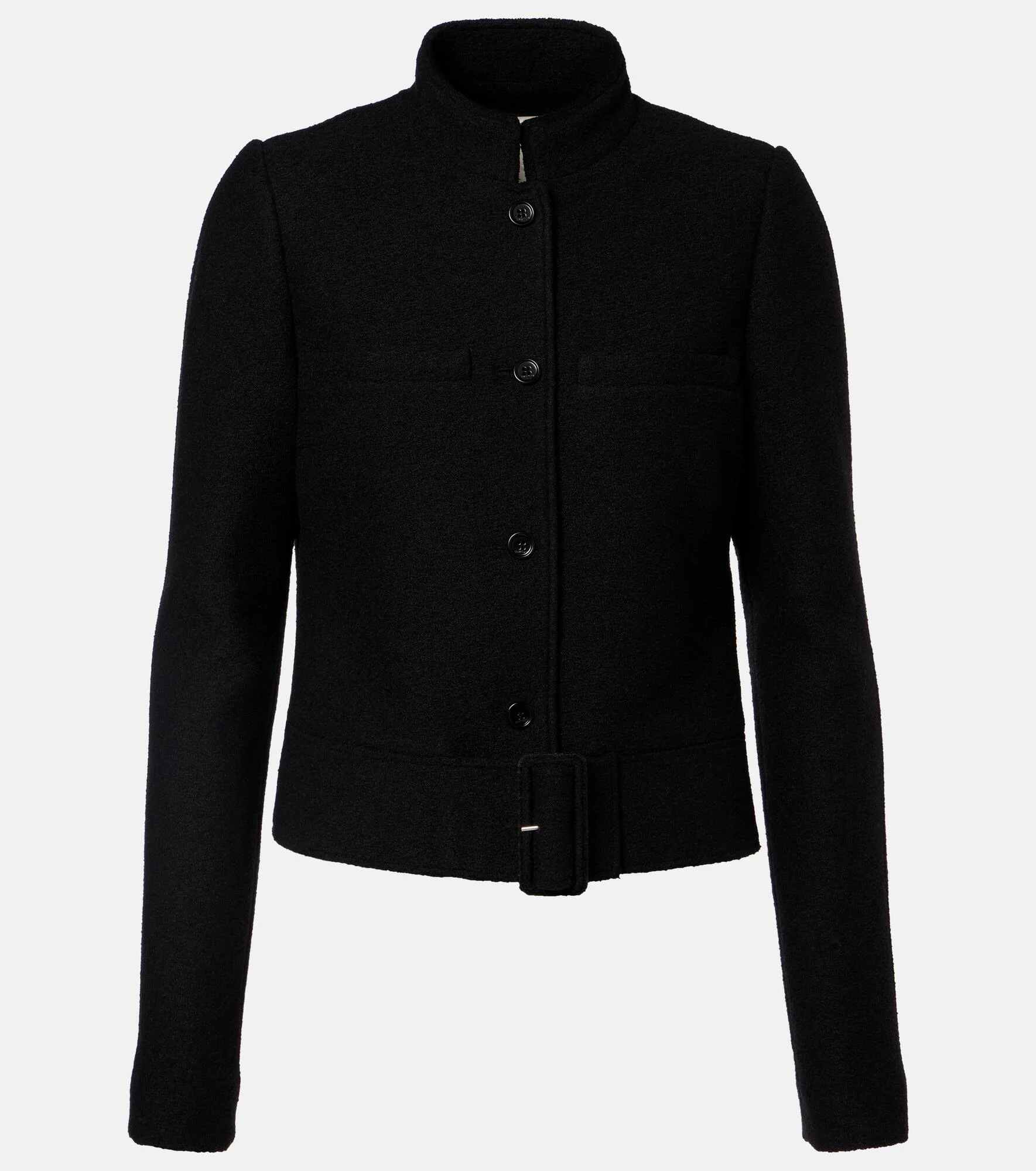 The futurist French fashion house Courreges is rocketing back into orbit with hyper-modern designs rooted in space-age influence. This jacket features a classic buttoned front and an attached belt at the waist. Product Details - Material: 60% polyester, 33% cotton, 5% polyamide, 2% other fibers - Care instructions: dry clean - Made in Slovakia - Color: black - Designer color name: Black - Lining: 100% viscose - Closure: buttoned front - Pockets: breast pockets - Attached belt - Item number: P01120079 Size & Fit - True to size - Straight fit - Non-stretchy fabric - Falls to the hip - The model seen in the picture is 178cm-5'10" and wearing a size FR 36