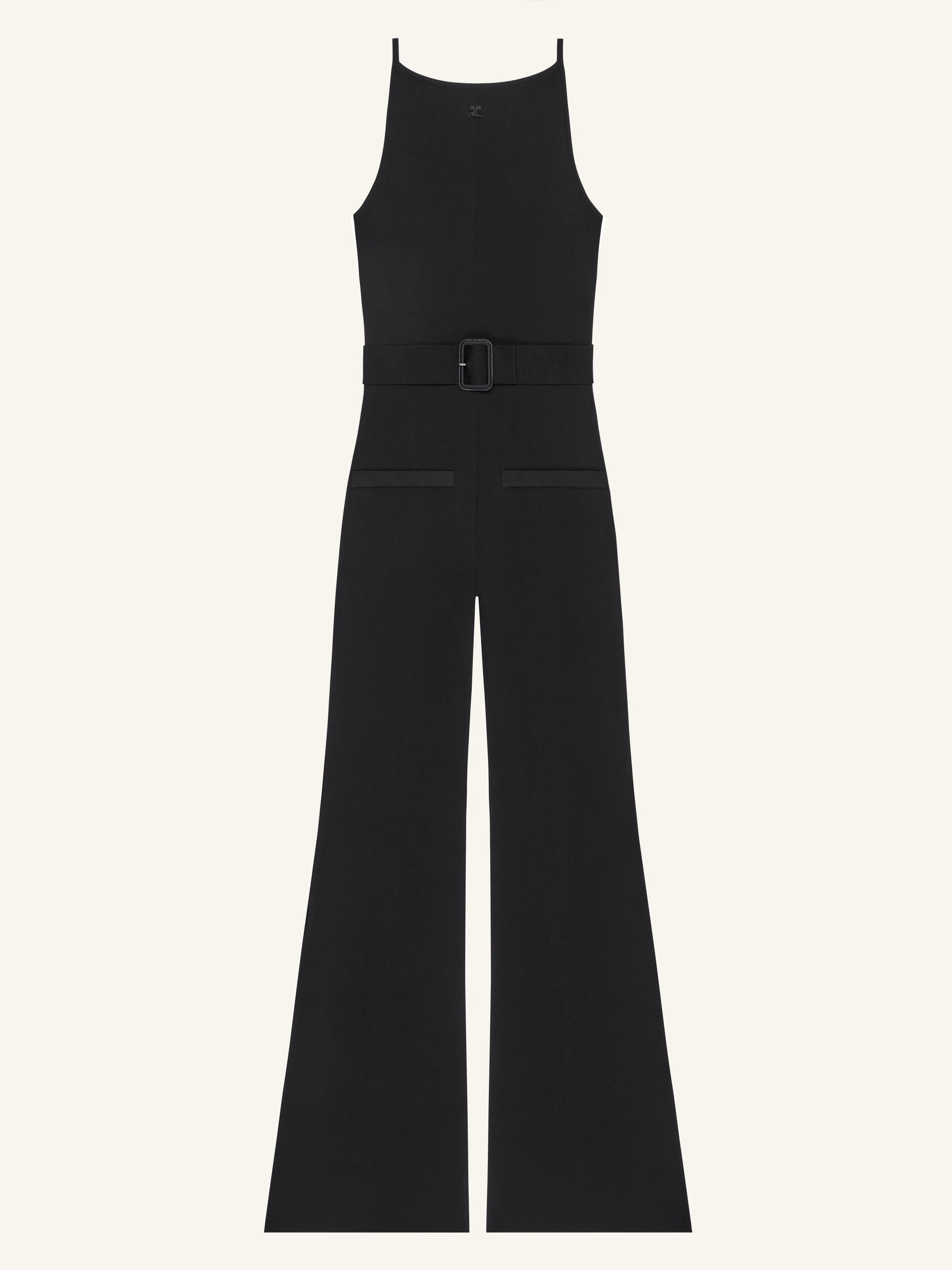 Knit belted overall with thin straps and two flap pockets. AC logo below neckline. The model is 1.79m and wears a size S. DETAILS Composition: 83% viscose , 17% elite pbt polyester Country of Manufacture: PT SKU: 126MCB049FI00639999 Color: Black